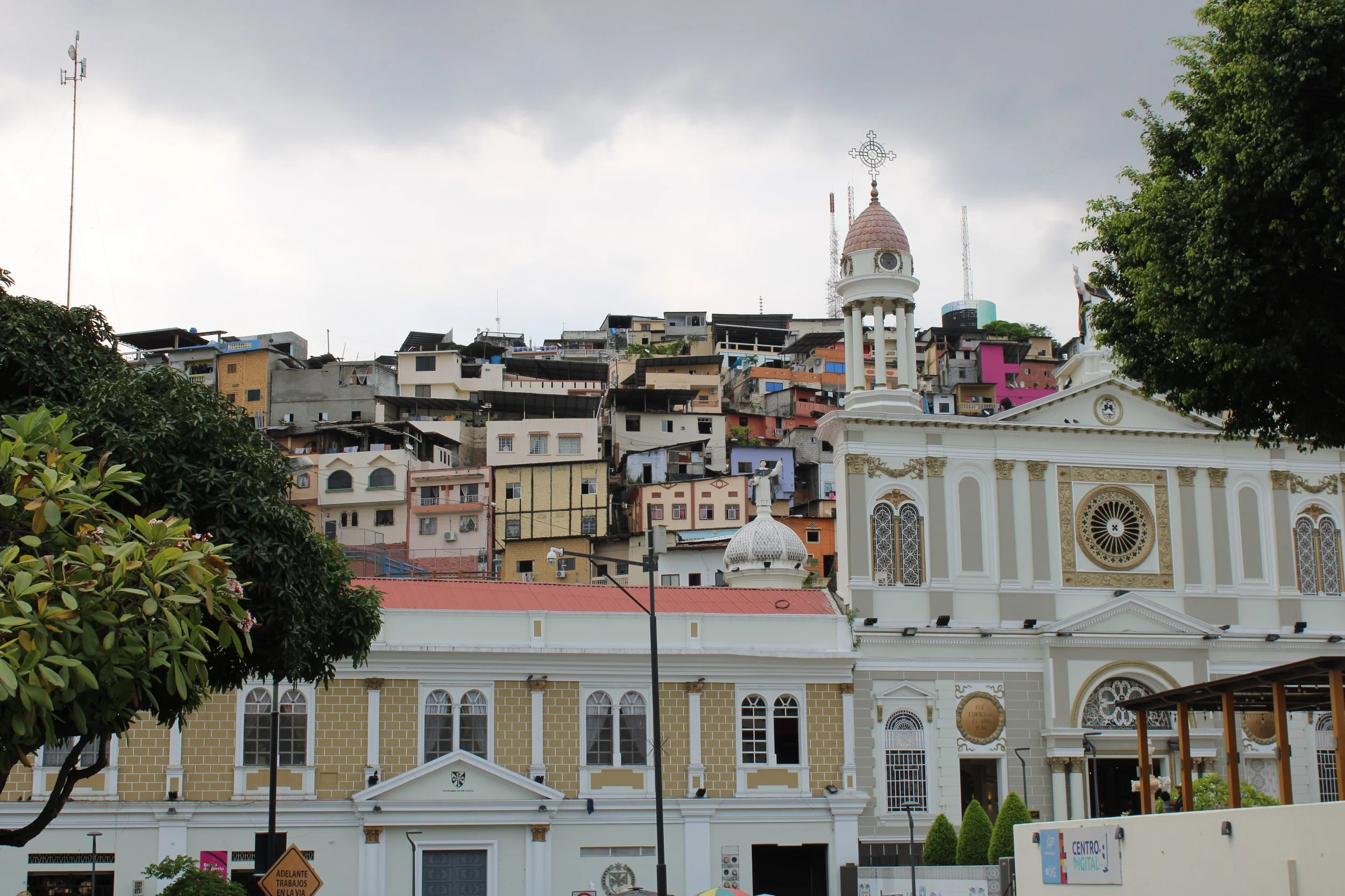The pioneering 16th Century Santiago de Guayaquil church was visible to early settlers in the Pacific port city of Guayaquil and Ecuador’s largest city grew up surrounding it. Today the church is encapsulated by apartments, stacked colorful houses and urban sprawl. A trek up an alley takes you to the active and historically preserved colonial church which still provides daily mass services for its neighborhood. The history and culture of the church and city is preserved and exhibited in a series of murals in front of the church which are considered some of the best art in Ecuador.