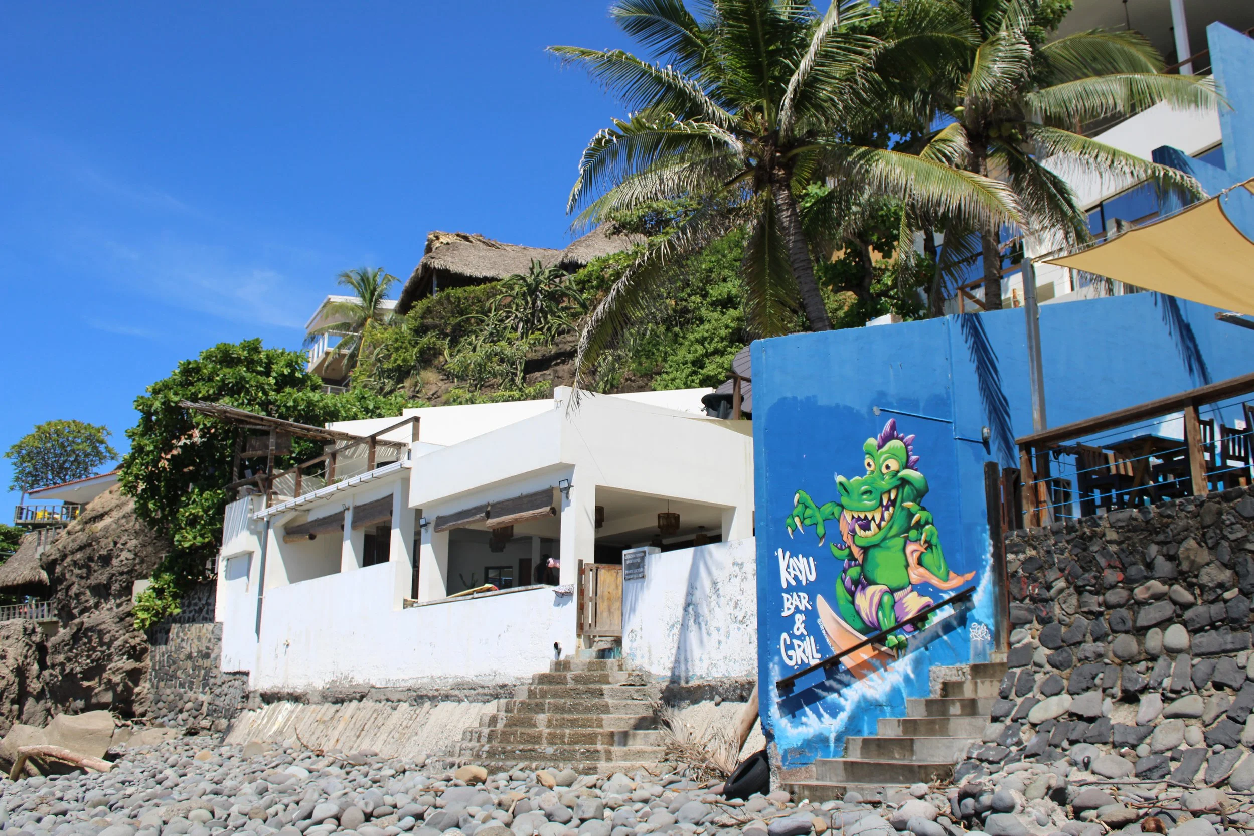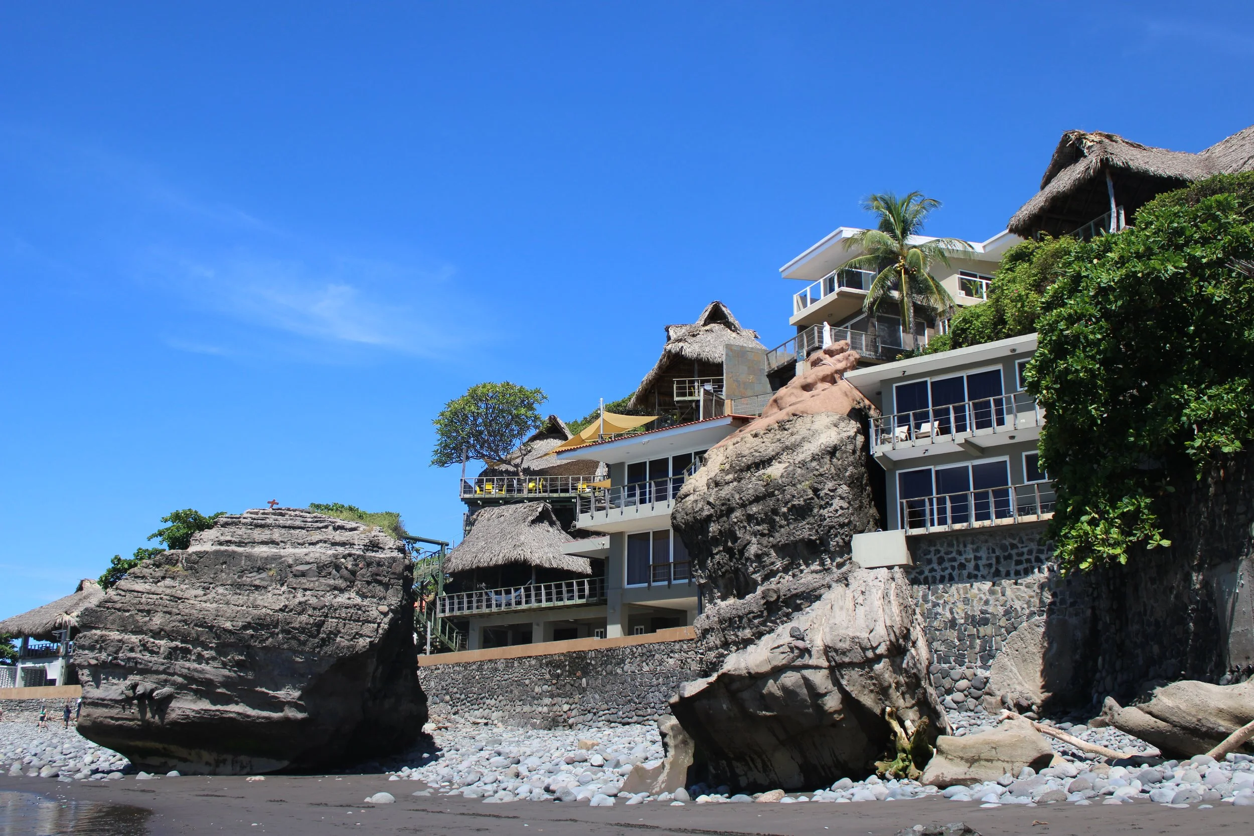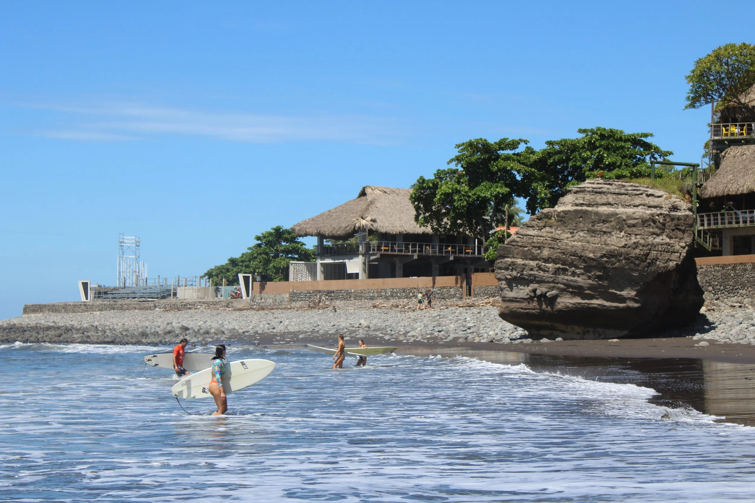 Surf City, El Salvador style— Playa el Tunco is named for a oceanside rock formation allegedly resembling a hog and has become the anchor of a newly developing surf city beach complex.